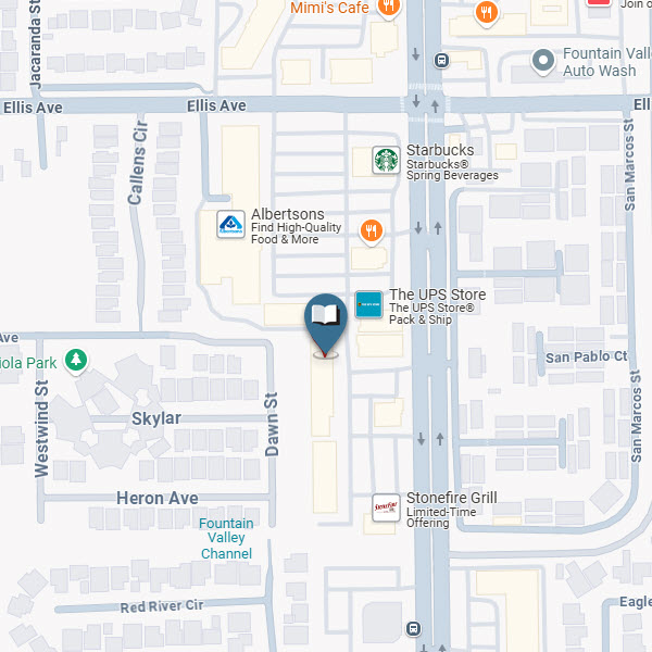 This branch serves the Fountain Valley area and is located in the Albertson's shopping center on the southwest corner just past the Islands restaurant.