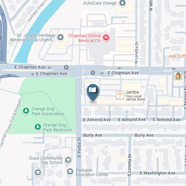 This branch serves the Orange area and is located off Chapman Ave. and Yorba St. next to the Little Caesars Pizza.