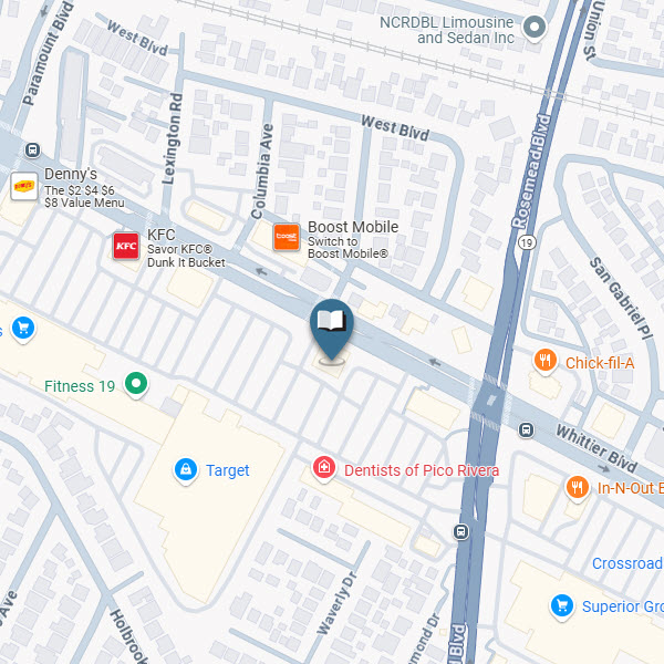 This branch serves the Pico Rivera area and is located between Rosemead Blvd and Paramount Blvd.